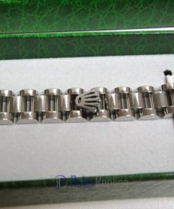 Replica bracciale rolex jubilèè oro bianco su acciaio 904 aisi l, completo di scatola official set e shopper bag